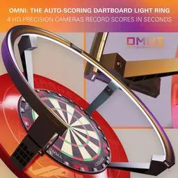 Omni consists of two main components: a state-of-the-art dartboard ring light and a powerful processing unit. The ring light is equipped with bright white LED lights and four HD precision cameras that monitor darts as they hit the board, ensuring almost flawless accuracy by calculating scores in less than a second. Omni's advanced camera system can even detect bounce outs, ensuring every throw is accurately recorded.